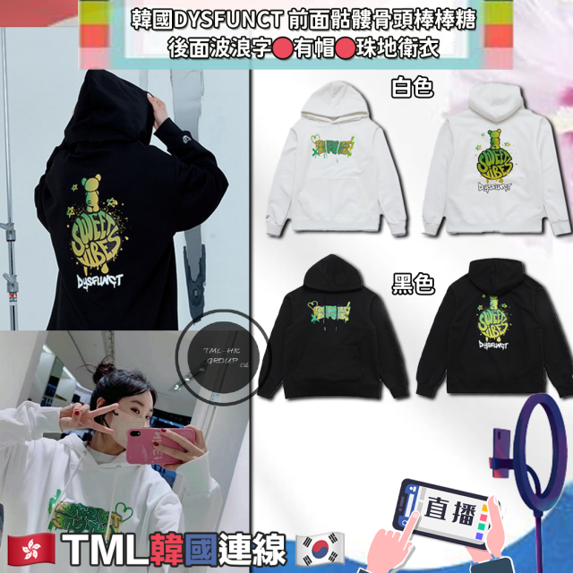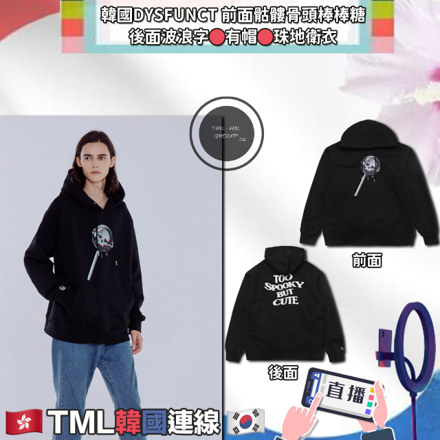 韓國DYSFUNCT 前面骷髏骨頭棒棒糖後面波浪字🔴有帽🔴珠地衛衣【現貨 | 預計2-3星期派貨 | 20251212Z(11785.)】