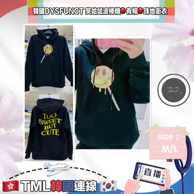 韓國DYSFUNCT 笑哈哈波棒糖🔴有帽🔴珠地衛衣【現貨 | 預計2-3星期派貨 | 20251212Z(11809.)】