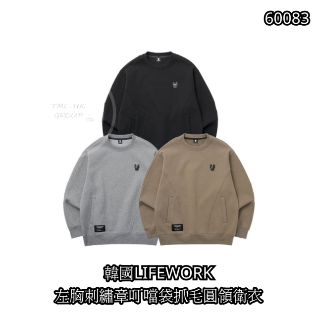 韓國 LIFEWORK 左胸刺繡章叮噹袋抓毛圓領衛衣(LW254MT451)【17/12截單 | 預計1月尾到貨 | 20251214A(60083.)】