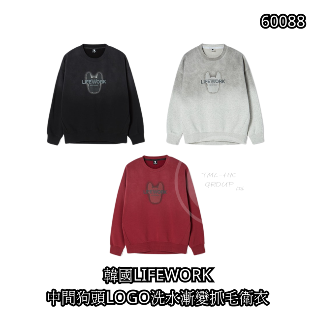 韓國 LIFEWORK 中間狗頭LOGO洗水漸變抓毛衛衣(LW254MT851)【17/12截單 | 預計1月尾到貨 | 20251214A(60088.)】
