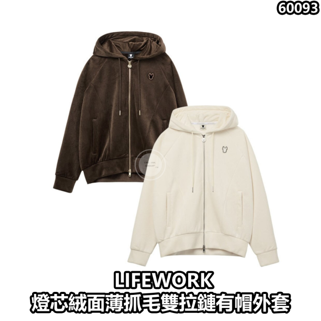 韓國 LIFEWORK 燈芯絨面薄抓毛雙拉鏈有帽外套(LW254ZT846)【17/12截單 | 預計1月尾到貨 | 20251214A(60093.)】