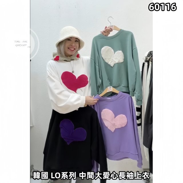 韓國 LO系列 中間大愛心長袖上衣【5件包郵 | 4件減每件$10 | 20/12截單 | 預計1月中至尾到貨 | 20251215B(60116.)】