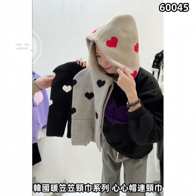 韓國暖笠笠頸巾系列 心心帽連頸巾【兩件以上每件減$4 | 20/12截單 | 預計1月中至尾到貨 | 20251215A(60045.)】