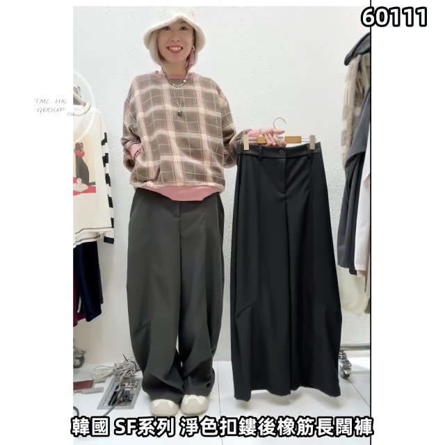 韓國 SF系列 淨色扣鏤後橡筋長闊褲【5件包郵 | 4件減每件$10 | 20/12截單 | 預計1月中至尾到貨 | 20251215B(60111.)】