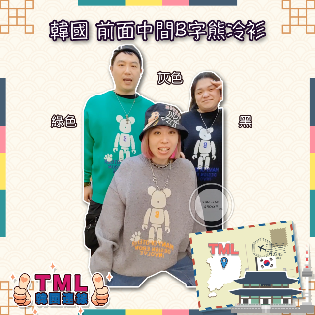 韓國 BARON 前面中間B字熊冷衫【現貨| 預計2-3星期派貨 | 20251218Z(13201.)】
