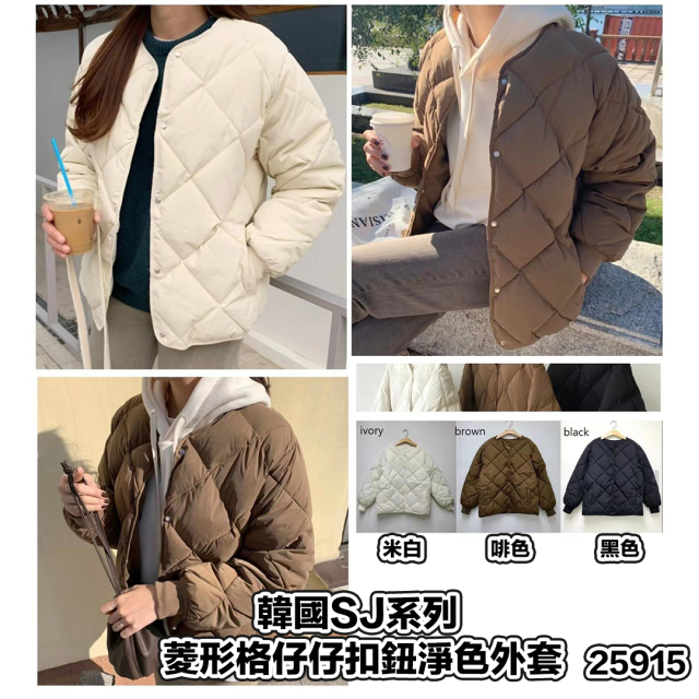 韓國 SJ系列 菱形格仔仔扣鈕淨色外套【現貨| 預計2-3星期派貨 | 20251218Z(25915.)】