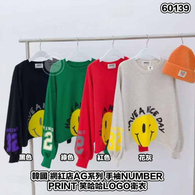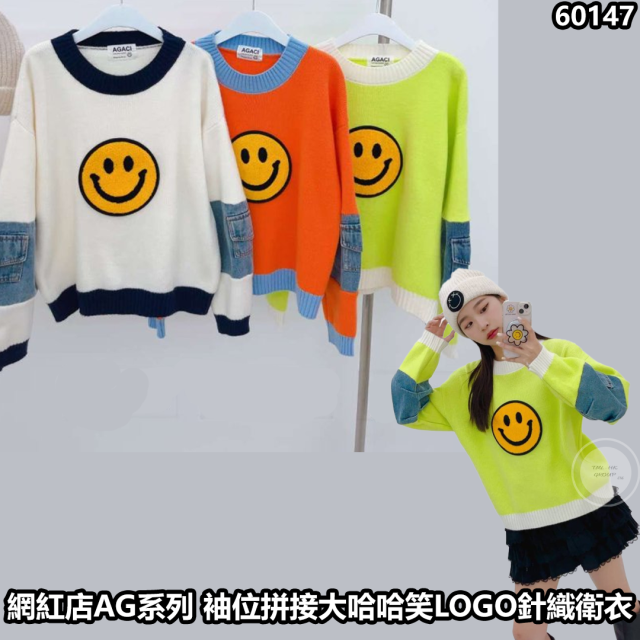 韓國 網紅店AG系列 袖位拼接大哈哈笑LOGO針織衛衣【3件以上減 $10 | 22/12截單 | 預計1月尾到貨 | 20251217(60147.)】