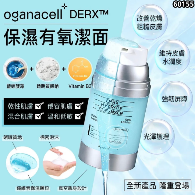 韓國OGANACELL DERX™ HYDRATE CLEANSER 高濃度勝肽注氧保濕深層潔面凝膠 120ml (藍色)【23/12截單 | 預計1月尾至2月初到貨 | 20251218B(60155.)】