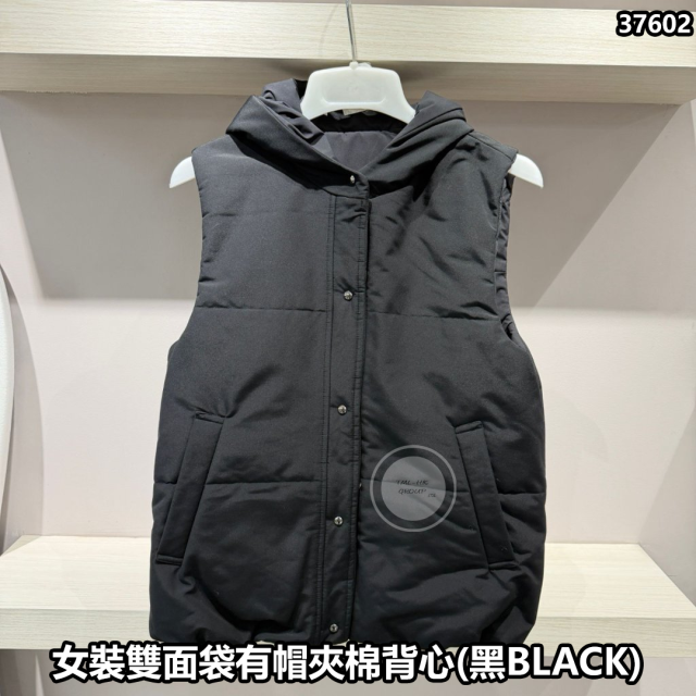 韓國羽絨倉 女裝雙面袋有帽夾棉背心(黑BLACK)(S#CMWPNA -0901)【23/12截單 | 預計1月尾到貨 | 20251218B(37602.)】