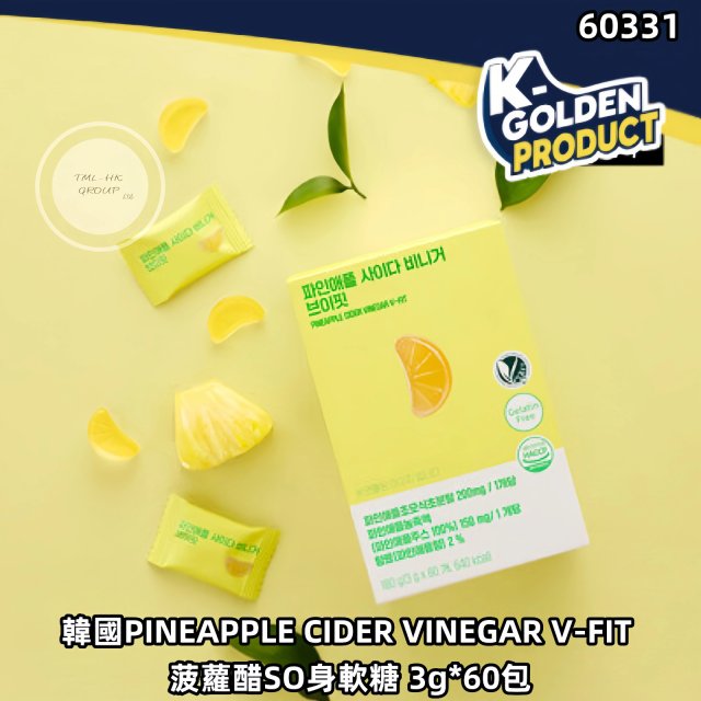 韓國PINEAPPLE CIDER VINEGAR V-FIT 菠蘿醋SO身軟糖 3g*60包【買滿$1000包郵 | 24/12截單 | 預計1月尾至2月初到貨 | 20251219B(60331.)】