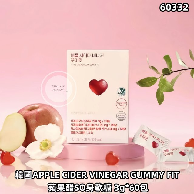 韓國APPLE CIDER VINEGAR GUMMY FIT 蘋果醋SO身軟糖 3g*60包【買滿$1000包郵 | 24/12截單 | 預計1月尾至2月初到貨 | 20251219B(60332.)】
