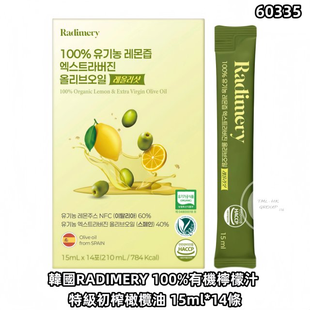 韓國RADIMERY 100%有機檸檬汁 特級初榨橄欖油 15ml*14條【買滿$1000包郵 | 24/12截單 | 預計1月尾至2月初到貨 | 20251219B(60335.)】