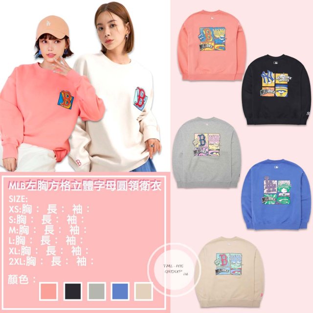 11151.MLB 左胸方格立體字母圓領衛衣 (3AMTL0426)