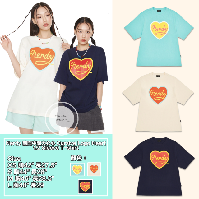 8544. Nerdy 前面中間大心心 Cursive Logo Heart 1/2 Sleeve T-shirt (PNEU22KG411/ PNEU22KG102) ⚠️只有直購 20/4/2025