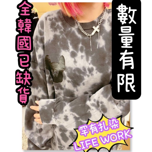 10669. ✨LIFEWORK 扎染左胸黑色狗仔W標 圓領衛衣 (LW203MT240)