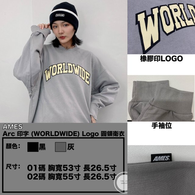 4980.Ames Arc 印字 (WORLDWIDE) Logo 圓領衛衣