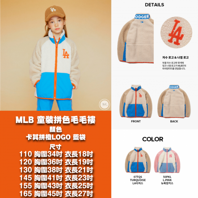 MLB 童裝拼色毛毛褸 (7AJPF0416)【9/10截單 | 預計10月中至尾出貨 | 20251004(6459.)】