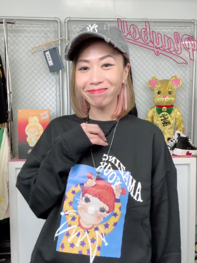 陸心媛 橙頭髮扎孖髻星星衫女仔 圓領衛衣 (黑)【預計10月中至尾出貨 | 20251003(6449.)】