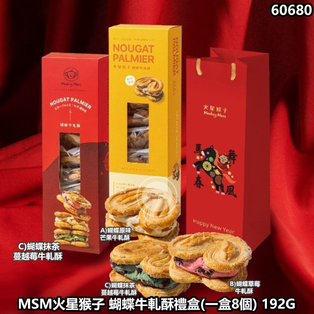 MSM火星猴子 蝴蝶牛軋酥禮盒(一盒8個) 192G【新年團 | 買滿10盒包郵 | 31/12 23.59 截單 | 預計2月初至中到貨 | 20251230(60680.)】
