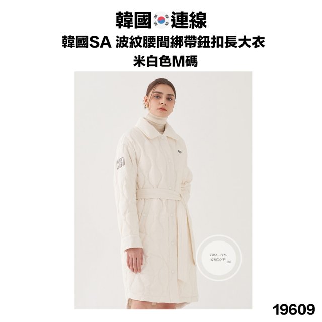 🔴米白色M碼🔴韓國SA 波紋腰間綁帶鈕扣長大衣(SWDJ01115)【現貨| 預計2-3星期派貨 | 20251231Z(19609.)】