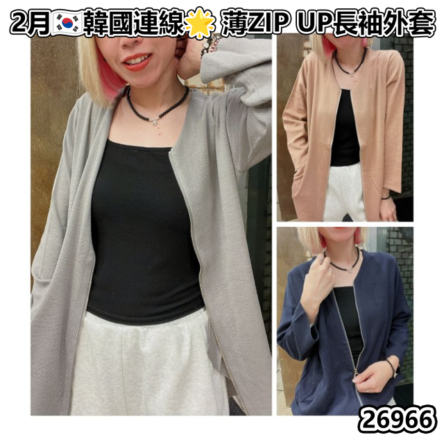 韓國 薄ZIP UP長袖外套【現貨 | 預計2-3星期派貨 | 20260101Z(26966.)】