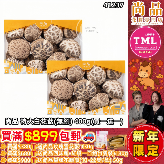 TML X 尚品 特大白花菇(無腳) 400g【買滿$899包郵 | 一套2件 | 10/1截單 | 預計2月初派貨 | 20260105(41237.)】