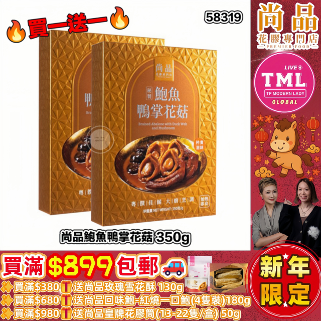 TML X 尚品 鮑魚鴨掌花菇 350g【買滿$899包郵 | 買一送一 | 10/1截單 | 預計2月初派貨 | 20260105(58319.)】