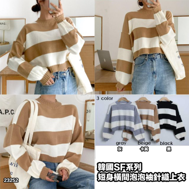 韓國SF系列 短身橫間泡泡袖針織上衣【現貨 | 預計2-3星期派貨 | 20260105Z(23252.)】