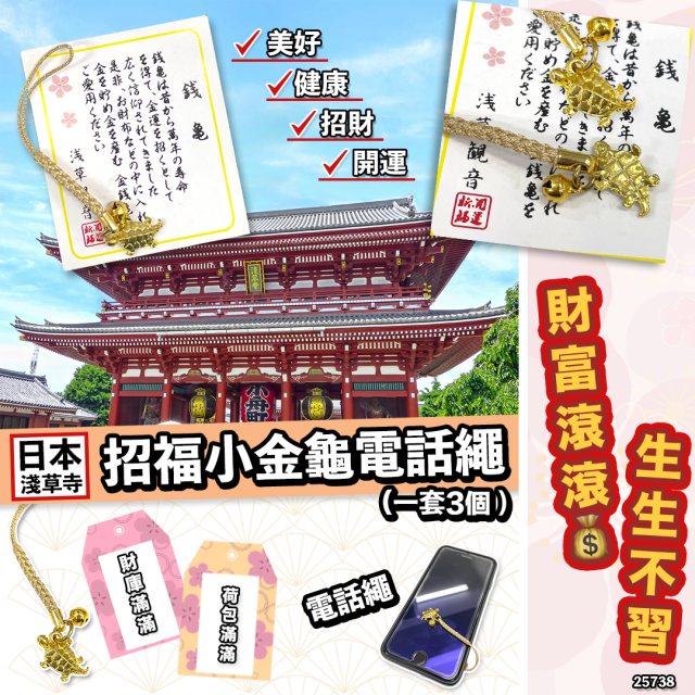 日本 淺草寺健康御守招福小金龜電話繩(一套3只)【11/1截單 | 預計2月初到貨 | 20260107A(25738.)】