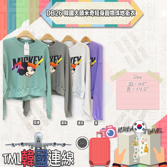 韓國大頭米奇短身圓領珠地衛衣【現貨| 預計2-3星期派貨 | 20260110Z(11509.)】