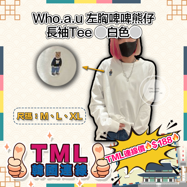 Who.a.u 左胸啤啤熊仔 長袖Tee⚪️白色⚪️(WHLWC3722U)【現貨| 預計2-3星期派貨 | 20260110Z(13112.)】