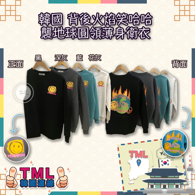 韓國背後火焰笑哈哈襲地球圓領薄身衛衣【現貨 | 預計2-3星期派貨 | 20260110Z(13194.)】