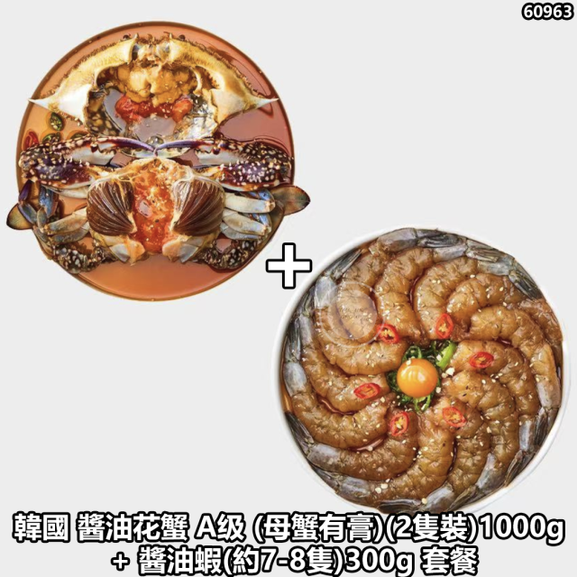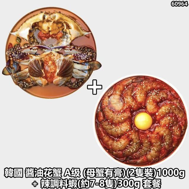 韓國 醬油花蟹 A级 (母蟹有膏)(2隻裝)1000g + 醬油蝦(約7-8隻)300g 套餐【15/1截單 | 預計14/2前SF凍櫃出貨 | 20260110(60963.)】