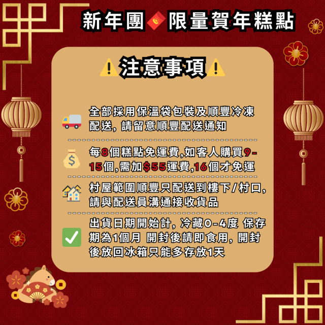 新年團 限量賀年糕點【每買滿8件包郵 | 21/1截單 | 由供應商聯絡順豐凍鏈出貨 | 20260115Z(61202.)】