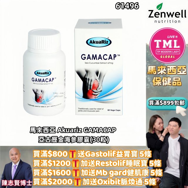 馬來西亞 保健品 Akuariz GAMACAP 亞古歷金海參膠囊(30粒)【買滿 $899 包郵 | 28/1截單 | 預計2月中至尾到貨 | 20260123(61496.)】