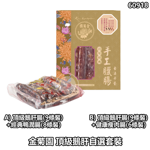 金菊園 🟡招牌鴛鴦臘腸套裝 頂級鵝肝腸(9條裝)+招牌切肉腸(8條裝)【買滿$650包郵 | 4/2截單 | 由供應商聯絡客人2月12-15號出貨 | 20260131A(60916.)】