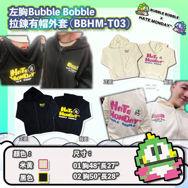 🦖泡泡龍 X HATE MONDAY"🦖 左胸Bubble Bobble 拉鍊有帽外套 (BBHM-T03)【現貨在倉 隨單派送 | 20260201A(13953.)】