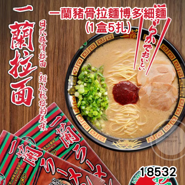 一蘭豬骨拉麵博多細麵 (1盒5扎)【7/2截單 | 預計2月中至尾到貨 | 20260202A(18532.)】