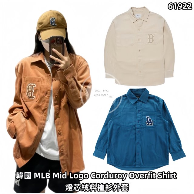 韓國 MLB Mid Logo Corduroy Overfit Shirt 燈芯絨料裇衫外套(3AWSB0226)【9/2截單 | 預計3月初至中到貨 | 20260204(61922.)】