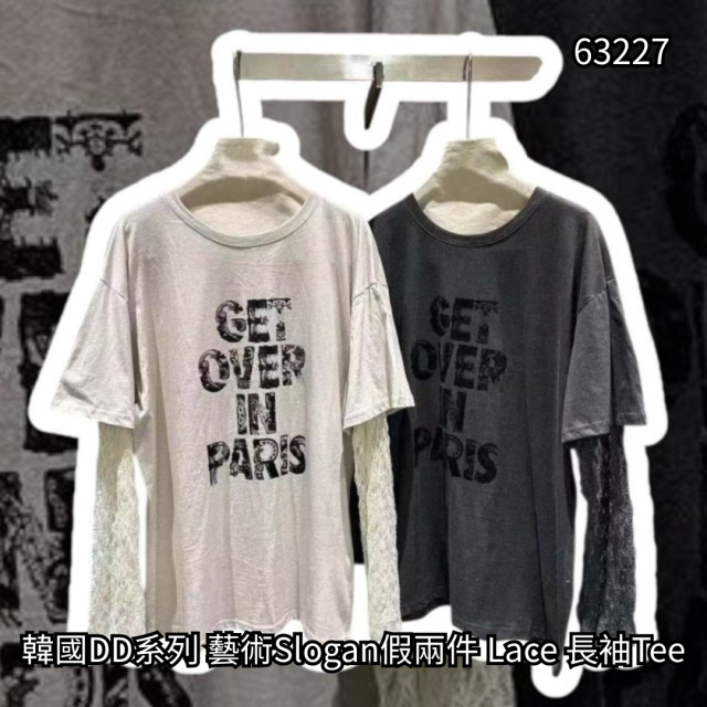 韓國 DD系列 藝術Slogan假兩件 Lace 長袖Tee【買滿5件包郵 | 17/3截單 | 預計4月中至尾到貨 | 20260312B(63227.)】