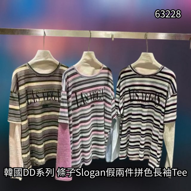 韓國 DD系列 條子Slogan假兩件拼色長袖Tee【買滿5件包郵 | 17/3截單 | 預計4月中至尾到貨 | 20260312B(63228.)】