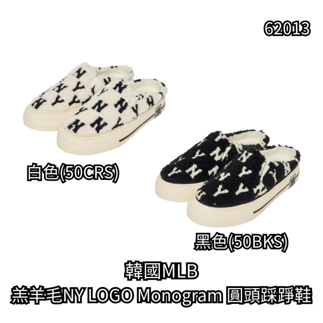 韓國 MLB 羔羊毛NY LOGO Monogram 圓頭踩踭鞋(3AMUUWS26)【16/3截單 | 預計4月中至尾到貨 | 20260312B(62013.)】