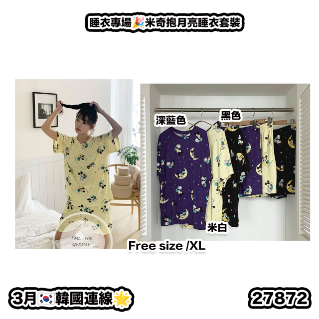 韓國 睡衣系列 米奇抱月亮睡衣套裝【24/3截單 | 預計4月尾到貨 | 20260319C(27872.)】