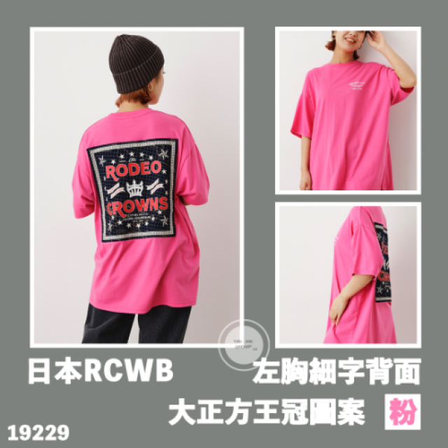 日本 RCWB 左胸細字背面大正方王冠圖案 💓粉色💓(420GSC90-097M)【現貨 | 預計2-3星期派貨 | 20260321Z(19229.)】