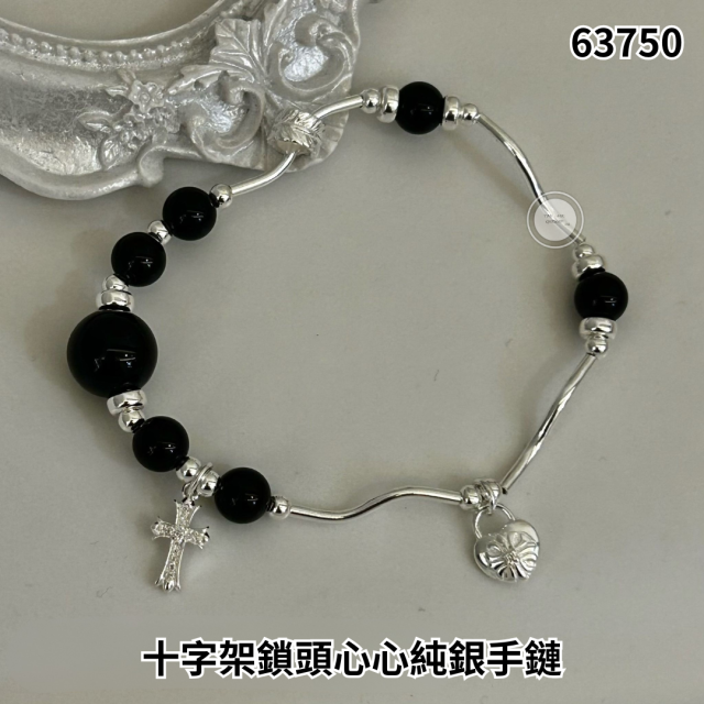 韓國MM925純銀 十字架黑銀珠手鏈【買滿5件包郵 | 29/3截單 | 預計5月初到貨 | 20260324B(63754.)】