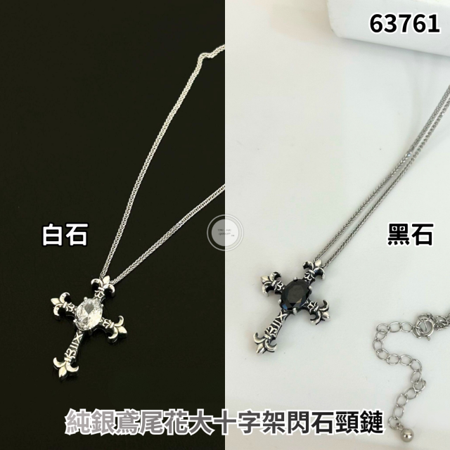 韓國MM925純銀 純銀鳶尾花大十字架閃石頸鏈【買滿5件包郵 | 29/3截單 | 預計5月初到貨 | 20260324B(63761.)】