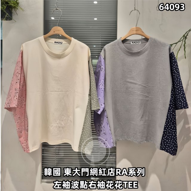 韓國 東大門網紅店RA系列 左袖波點右袖花花TEE【買滿5件包郵 | 7/4截單 | 預計5月初至中到貨 | 20260402B(64093.)】
