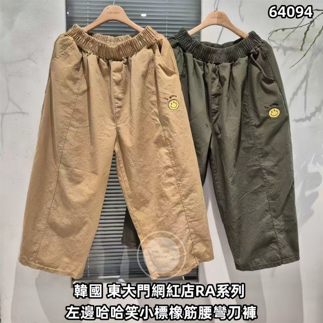 韓國 東大門網紅店RA系列 左邊哈哈笑小標橡筋腰彎刀褲【買滿5件包郵 | 7/4截單 | 預計5月初至中到貨 | 20260402B(64094.)】
