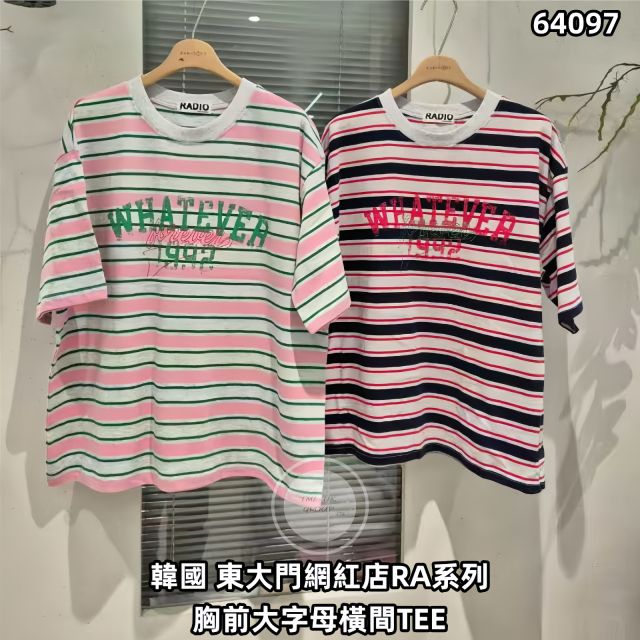 韓國 東大門網紅店RA系列 胸前大字母橫間TEE【買滿5件包郵 | 7/4截單 | 預計5月初至中到貨 | 20260402B(64097.)】