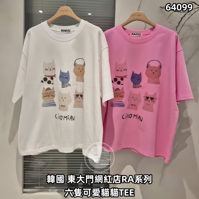 韓國 東大門網紅店RA系列 六隻可愛貓貓TEE【買滿5件包郵 | 7/4截單 | 預計5月初至中到貨 | 20260402B(64099.)】